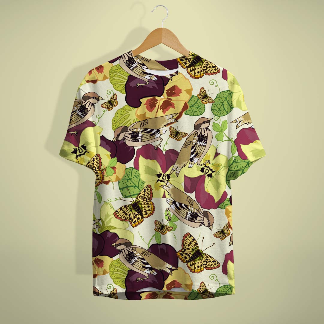 Nature-Inspired: T-shirts adorned with all over prints of nature elements such as florals, landscapes, or wildlife. Perfect for those who appreciate the beauty of the outdoors.