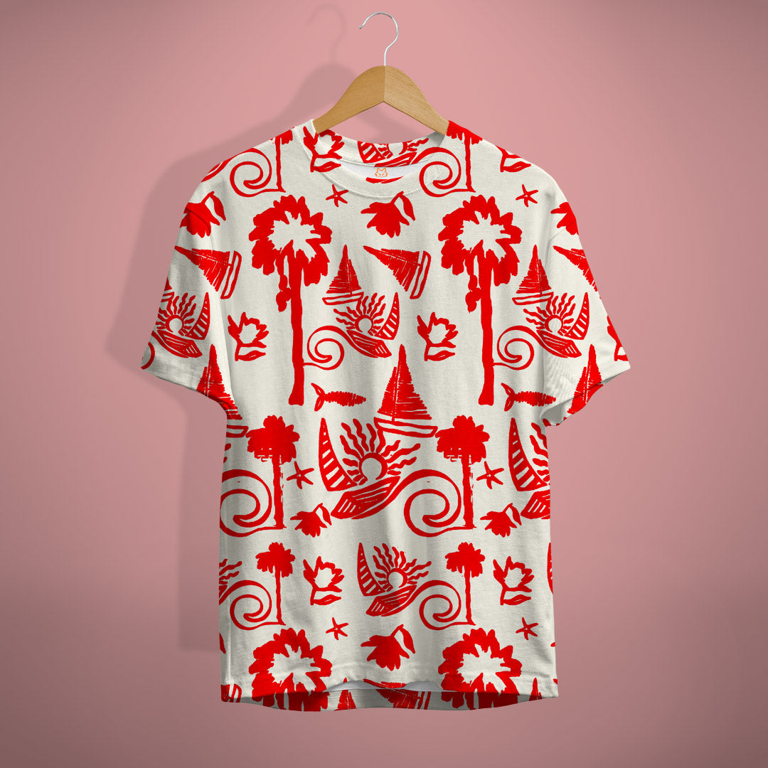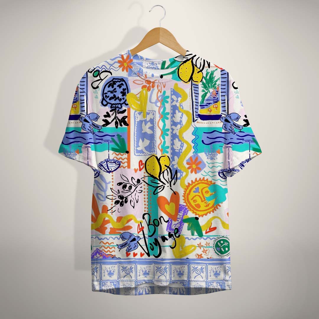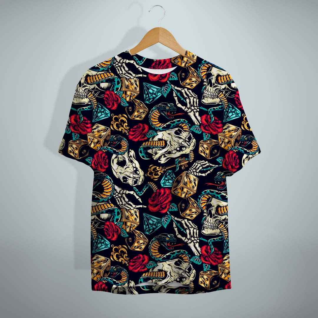 An all over printed t-shirt is a stylish garment where the design covers the entire surface of the shirt. Instead of a conventional, centralized print, these printed tees feature vibrant patterns or graphics that extend across the entire fabric. It's a fashion-forward choice, offering a bold and eye-catching look for those who want to make a statement with their clothing. Perfect for adding a touch of individuality to your wardrobe!