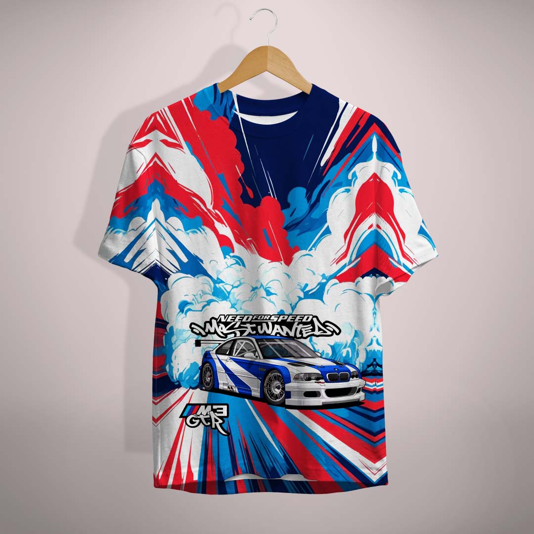 An full printed t-shirt is a garment where the design covers the entire surface, including the front, back, and sleeves. This creates a vibrant and eye-catching look.