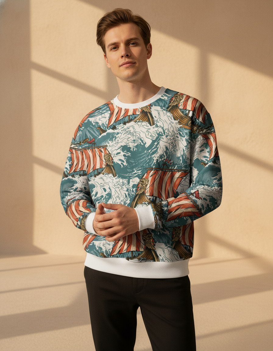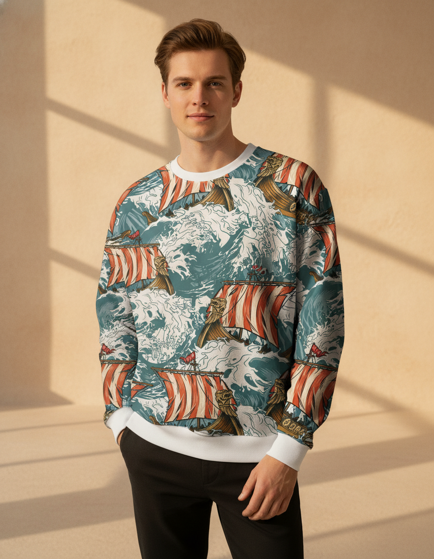- Round Neck & Long Sleeves Printed Sweatshirt