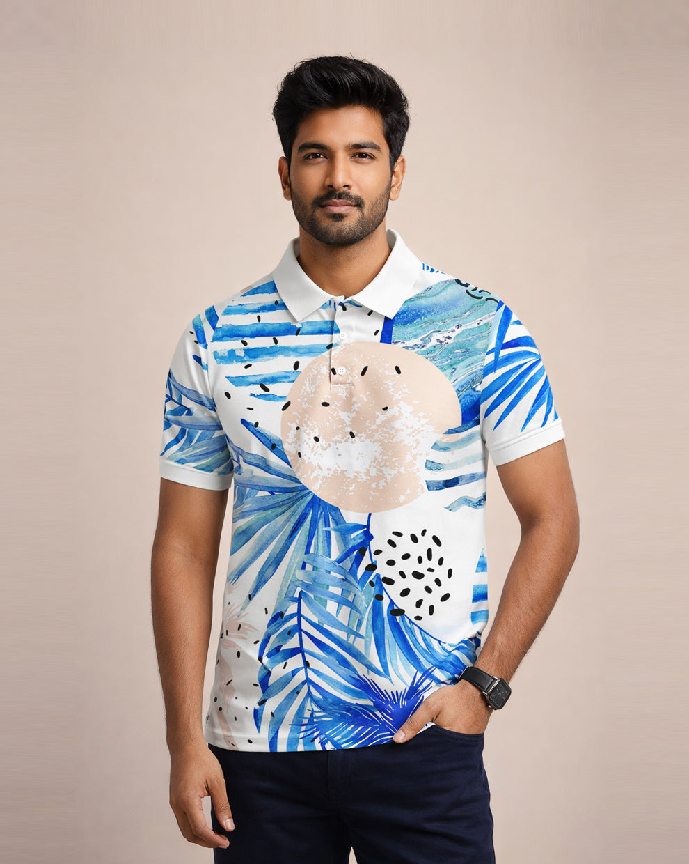Leaf Print Polo T-Shirt