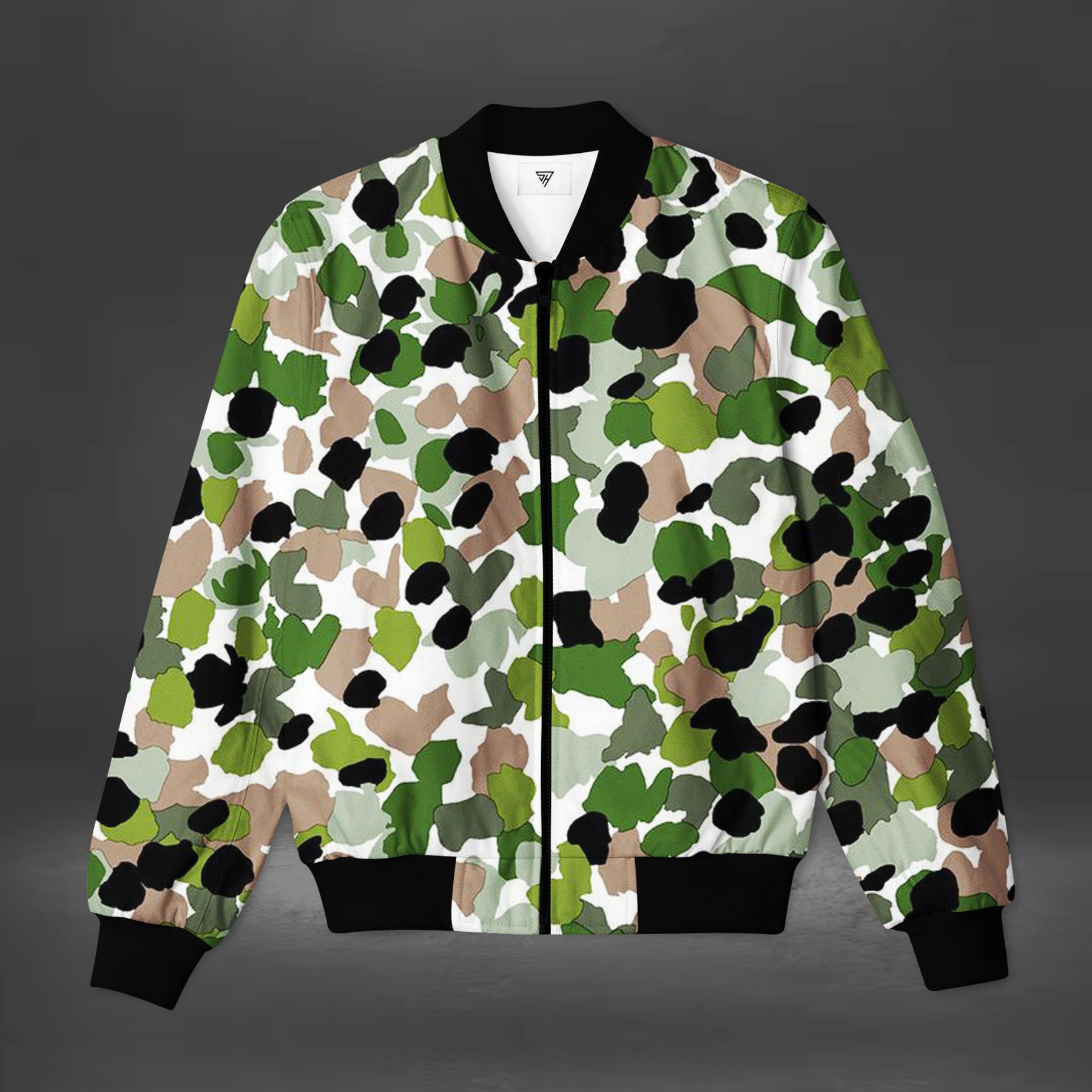 Men's Abstract Pattern Green Bomber Jacket