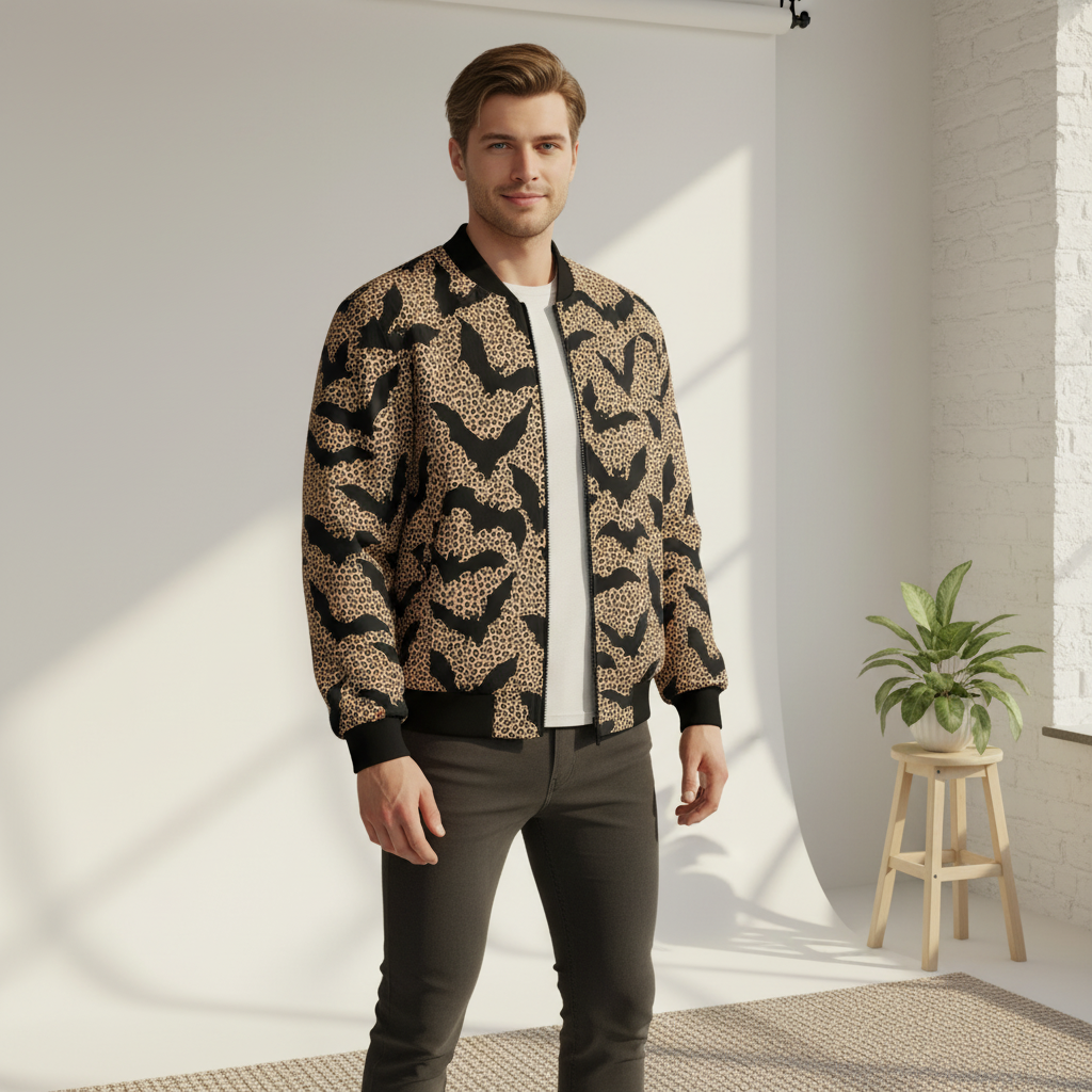 Men's Bat Printed Bomber Jacket