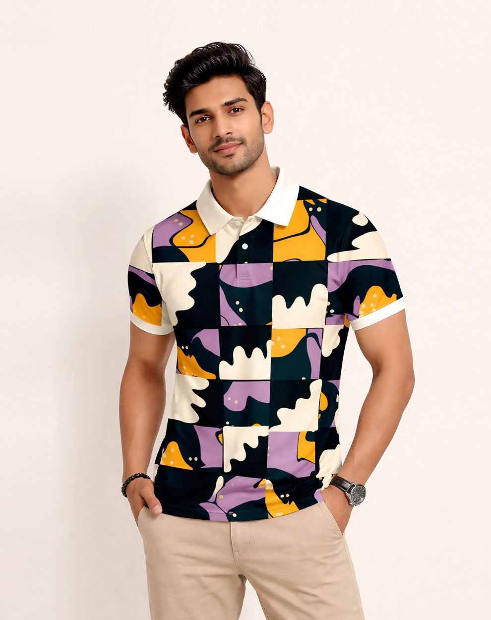 Naive Abstract Art Printed Polo T-Shirt