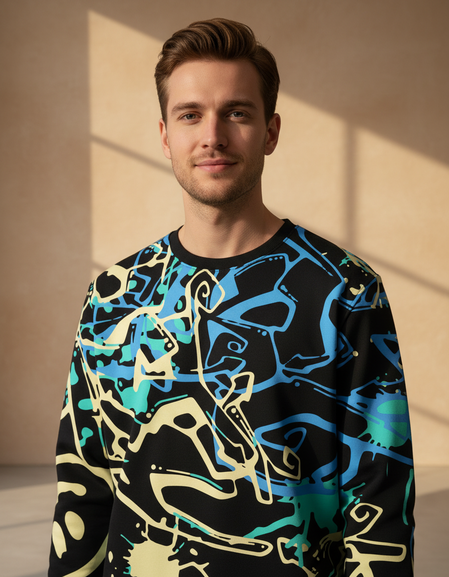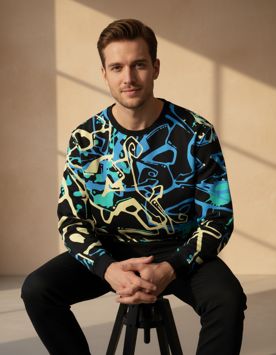 - Round Neck & Long Sleeves Printed Sweatshirt