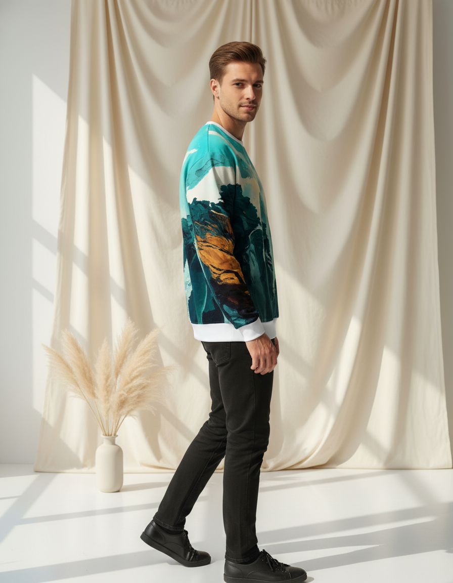 - Round Neck & Long Sleeves Printed Sweatshirt