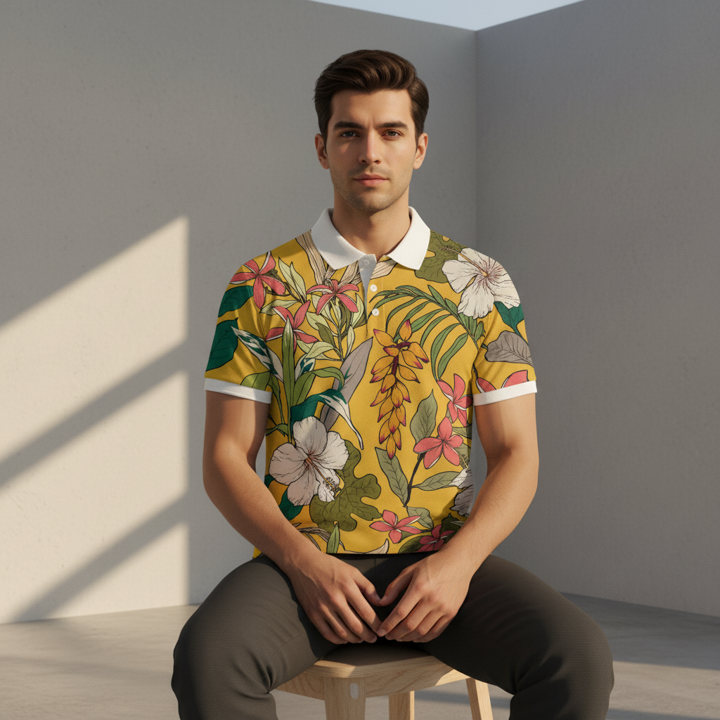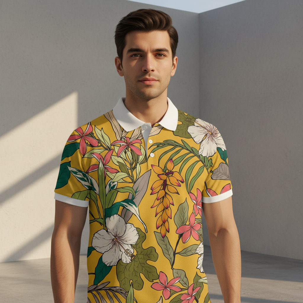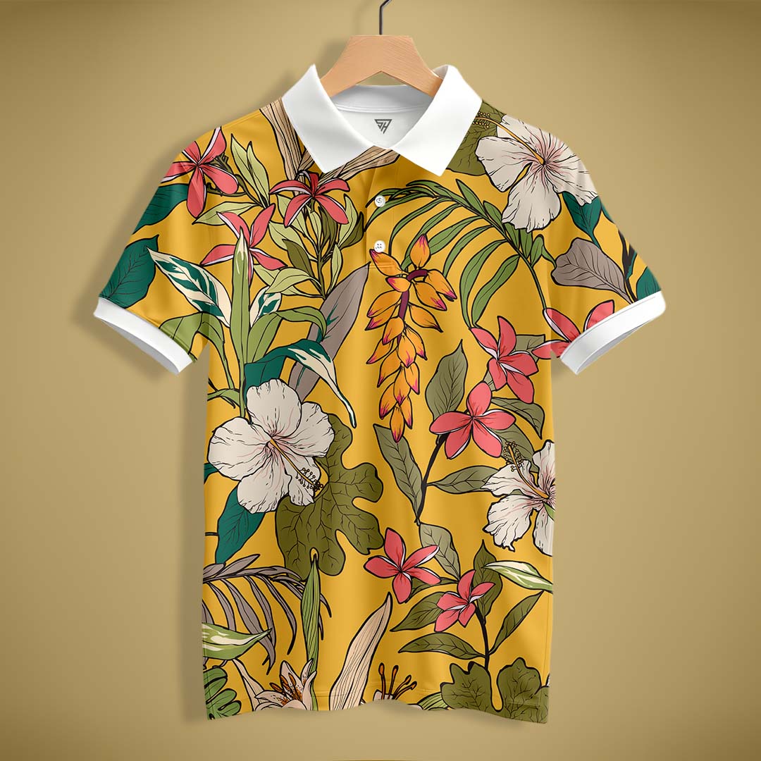 Yellow Floral Print Polo T-Shirt